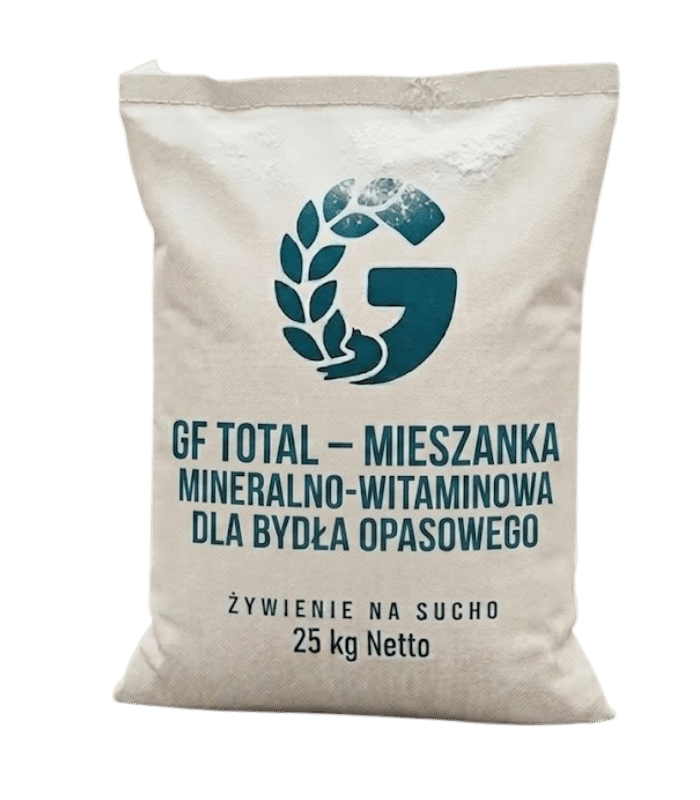 GF TOTAL to kompleksowa mieszanka paszowa uzupełniająca mineralna, przeznaczona dla bydła opasowego. Produkt dostarcza wysokiej koncentracji wapnia, fosforu oraz kluczowych mikroelementów, wspierając prawidłowy rozwój układu kostnego, metabolizm oraz ogólną kondycję zwierząt.